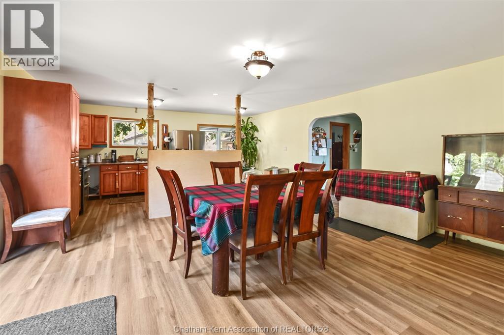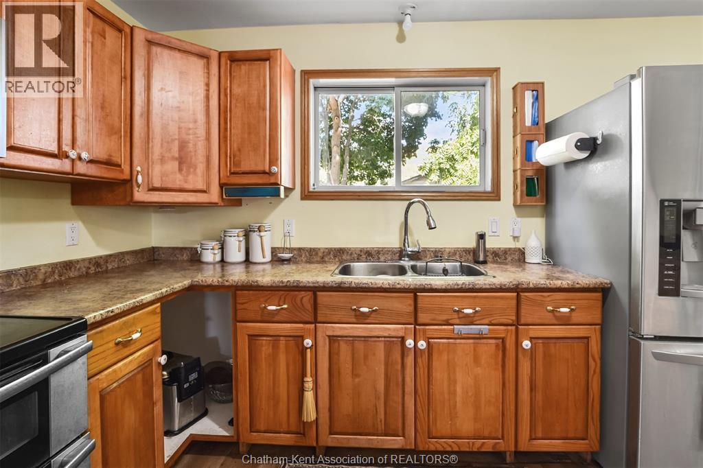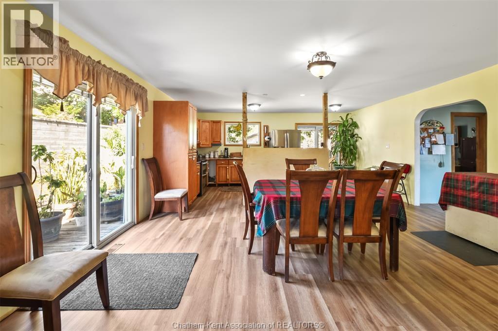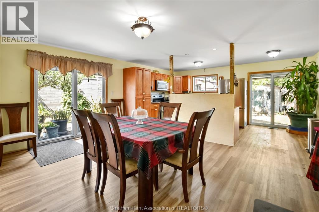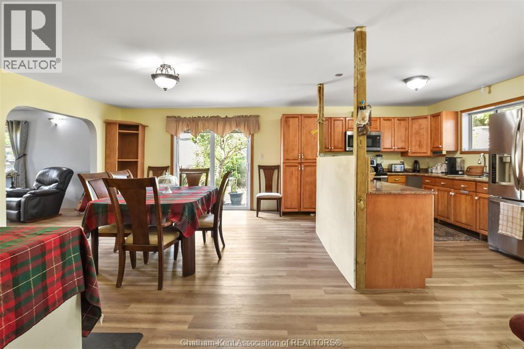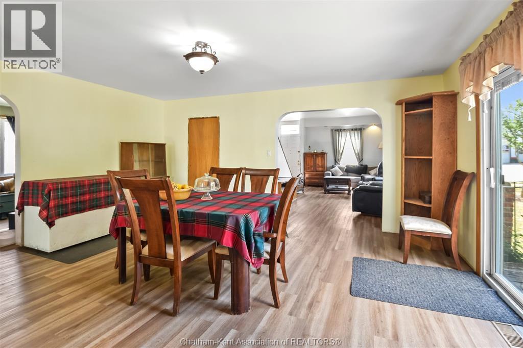 23 Chatham Street S located in the heart of charming downtown Blenheim has plenty to offer in an affordable price range. For a growing family we have 4 generous sized bedrooms, open concept kitchen and dining with patio doors to side deck, front living room, 4 pc bath and the side mudroom/laundry combination provides for extra pantry storage. Solid maple cabinetry, patio doors to rear deck from kitchen, large dining room. The primary is perfect for those needing a main floor bedroom and is large enough to be currently used as bedroom and office area, or would also be an excellent family room and still have the 3 bedrooms up. The site is larger than average frontage at 82', detached garage, storage shed and a fenced rear yard. The location is ideal for those wanting or needing handy walking access to the main street and the local amenities. The open concept design, large rooms, patio doors and many windows create a nice and bright atmosphere. Note: furnace is 2024 and roof 2 years. Immediate possession is possible if needed. (id:4069)