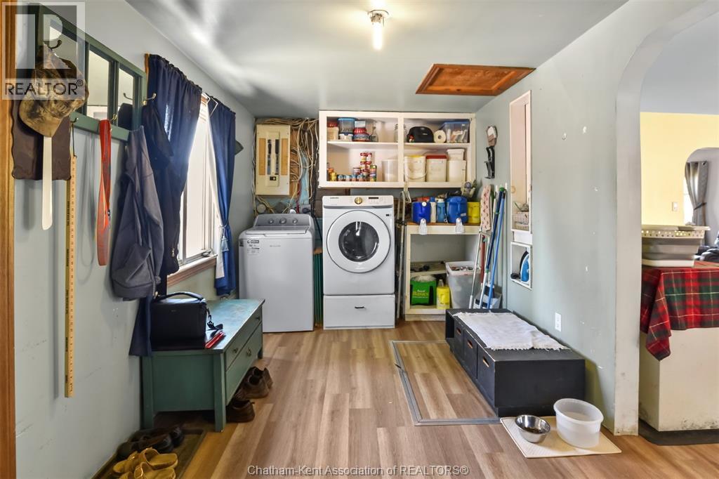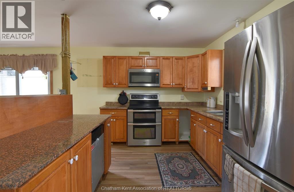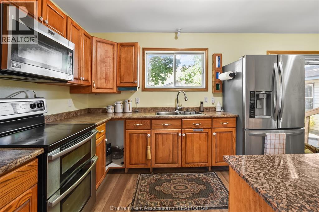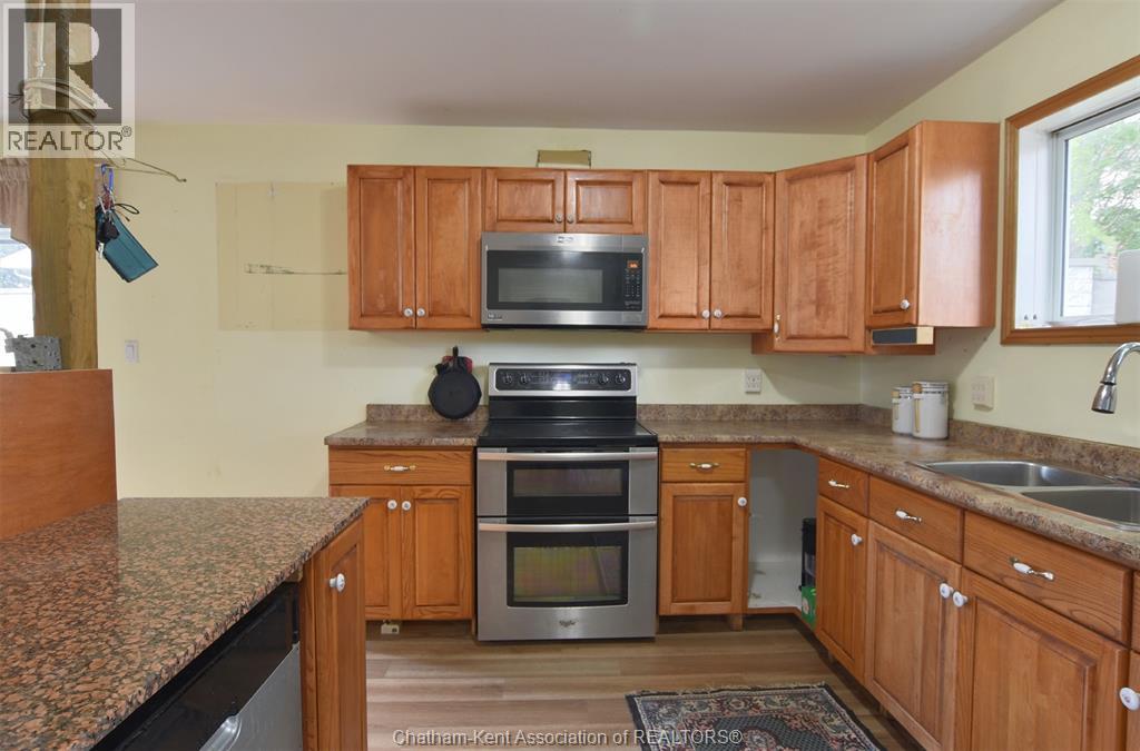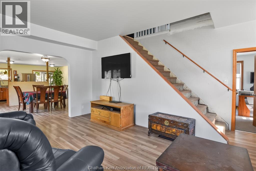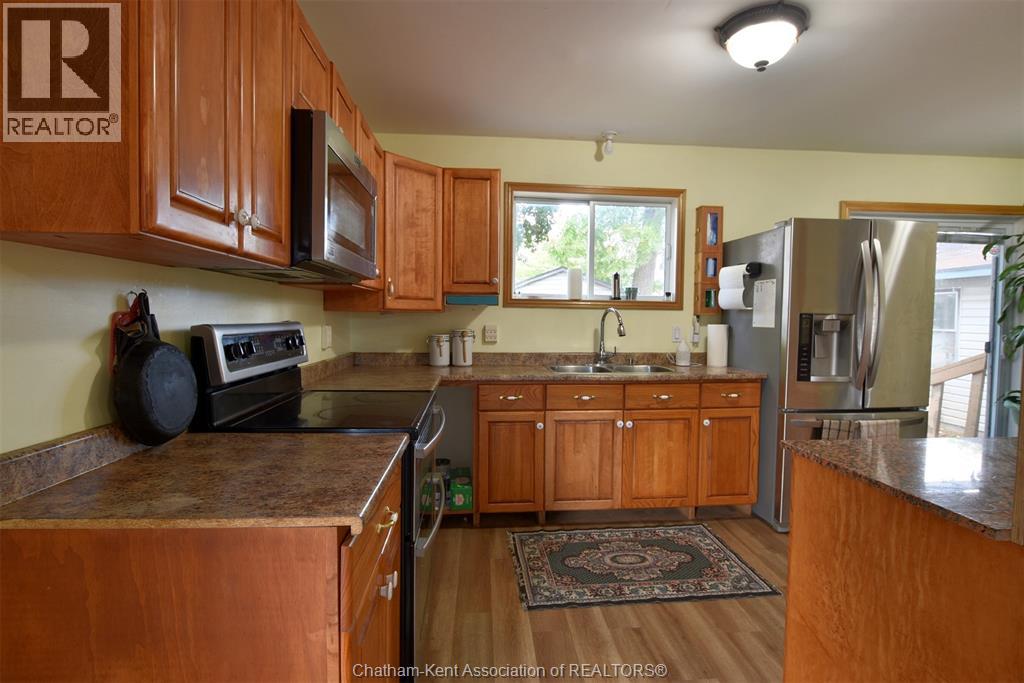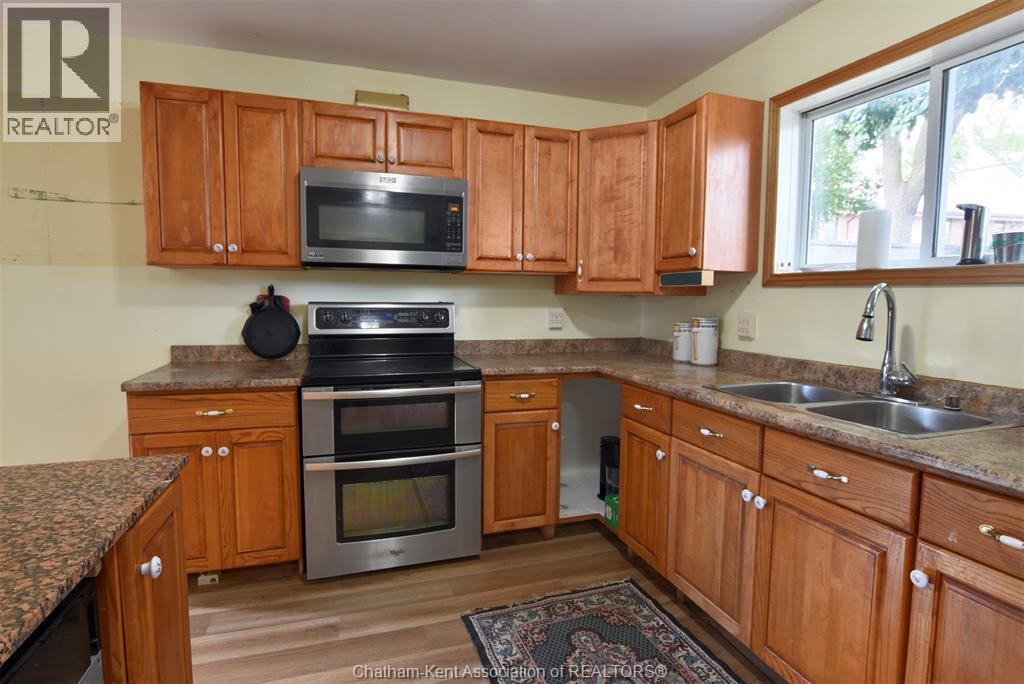 23 Chatham Street S located in the heart of charming downtown Blenheim has plenty to offer in an affordable price range. For a growing family we have 4 generous sized bedrooms, open concept kitchen and dining with patio doors to side deck, front living room, 4 pc bath and the side mudroom/laundry combination provides for extra pantry storage. Solid maple cabinetry, patio doors to rear deck from kitchen, large dining room. The primary is perfect for those needing a main floor bedroom and is large enough to be currently used as bedroom and office area, or would also be an excellent family room and still have the 3 bedrooms up. The site is larger than average frontage at 82', detached garage, storage shed and a fenced rear yard. The location is ideal for those wanting or needing handy walking access to the main street and the local amenities. The open concept design, large rooms, patio doors and many windows create a nice and bright atmosphere. Note: furnace is 2024 and roof 2 years. Immediate possession is possible if needed. (id:4069)