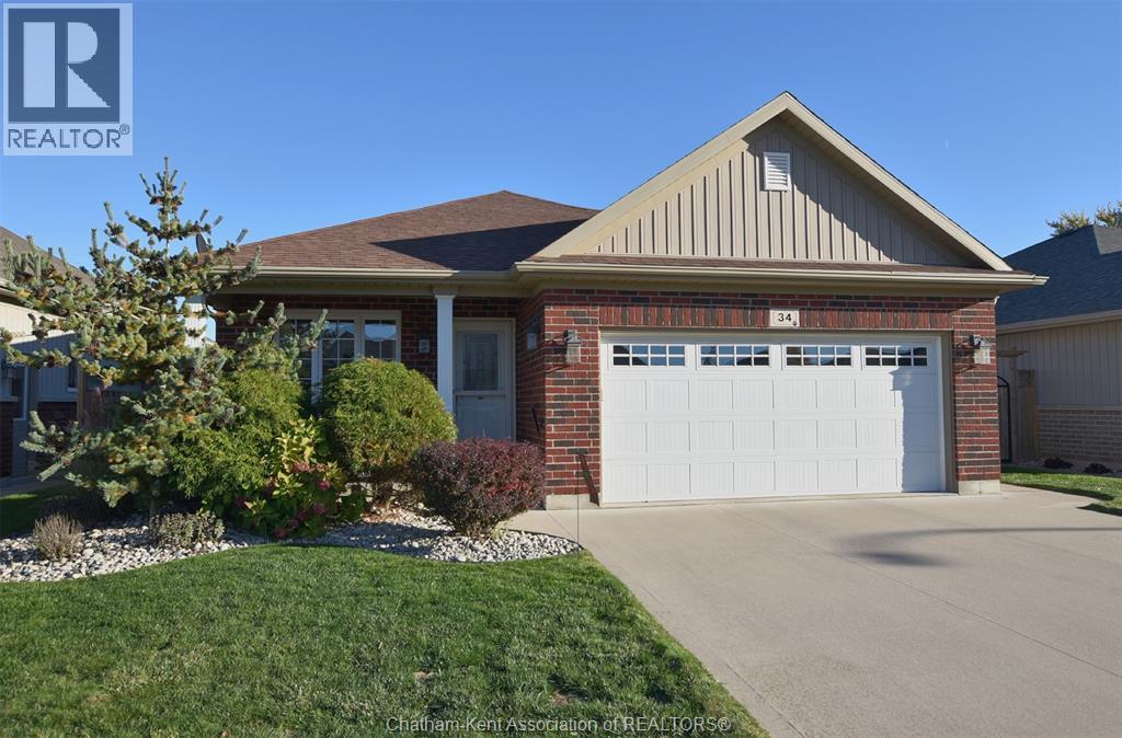 Welcome to Blenheim and this custom built (2015) ranch style home. A perfect design on one level with an open concept layout and attention to detail. Classic white Windmill cabinetry, island, built-in dishwasher and microwave. Combination dining and living room with gas fireplace, side door for handy bbq access from the kitchen area and patio doors to rear sundeck and fenced yard. Primary bedroom with a bay window, walk-in closet and well appointed 3 pc ensuite. Entrance area features an inviting front porch, den/office or 2nd bedroom, 2pc bath with convenient main floor stackable laundry and storage unit. Main level is nice and bright, transom windows and overall provides for a beautiful living space. Finished lower level has an amazing and large family room with gas fireplace, full 4 pc bath, storage and utility. The basement is ideal and large enough to accommodate an extra bedroom if needed. Fenced yard, wooden deck with awning, custom landscaping and double concrete drive round out the exterior features. In some cases there is an advantage to purchase an existing home with extra quality features without the wait for future completion dates. This home is an excellent example of that scenario and has over 2100 square feet of finished living space. If you are searching for an open concept ranch in a prime location, 34 Lanz has got you covered. (id:4069)