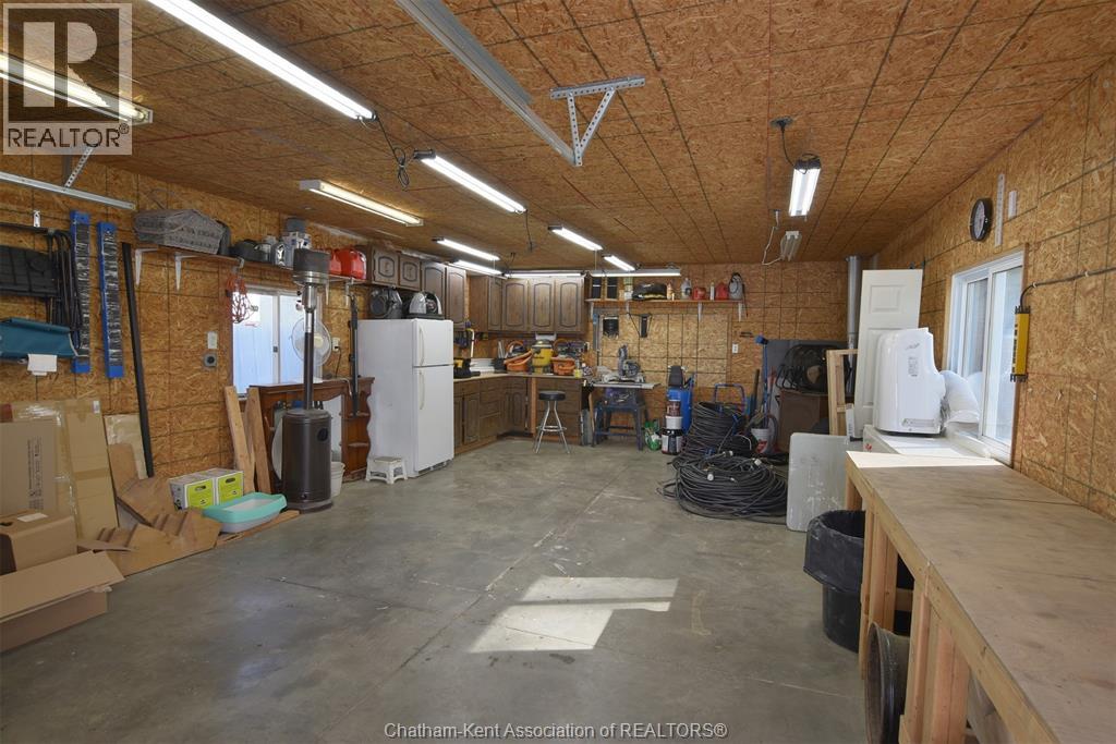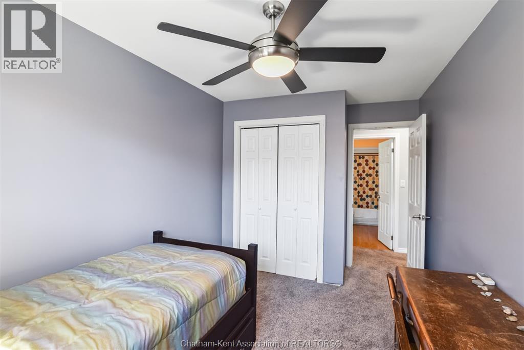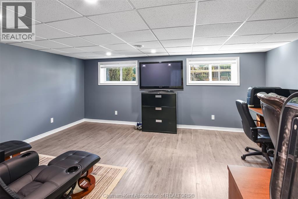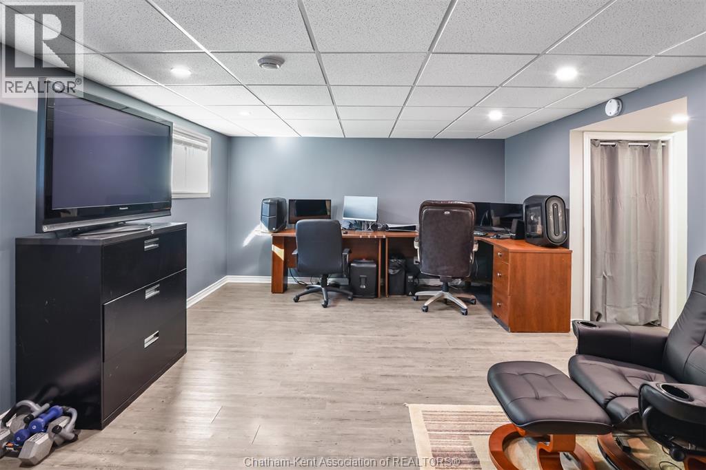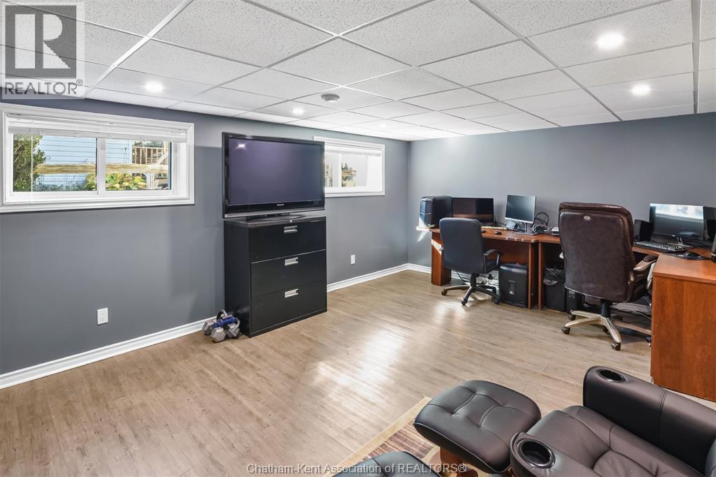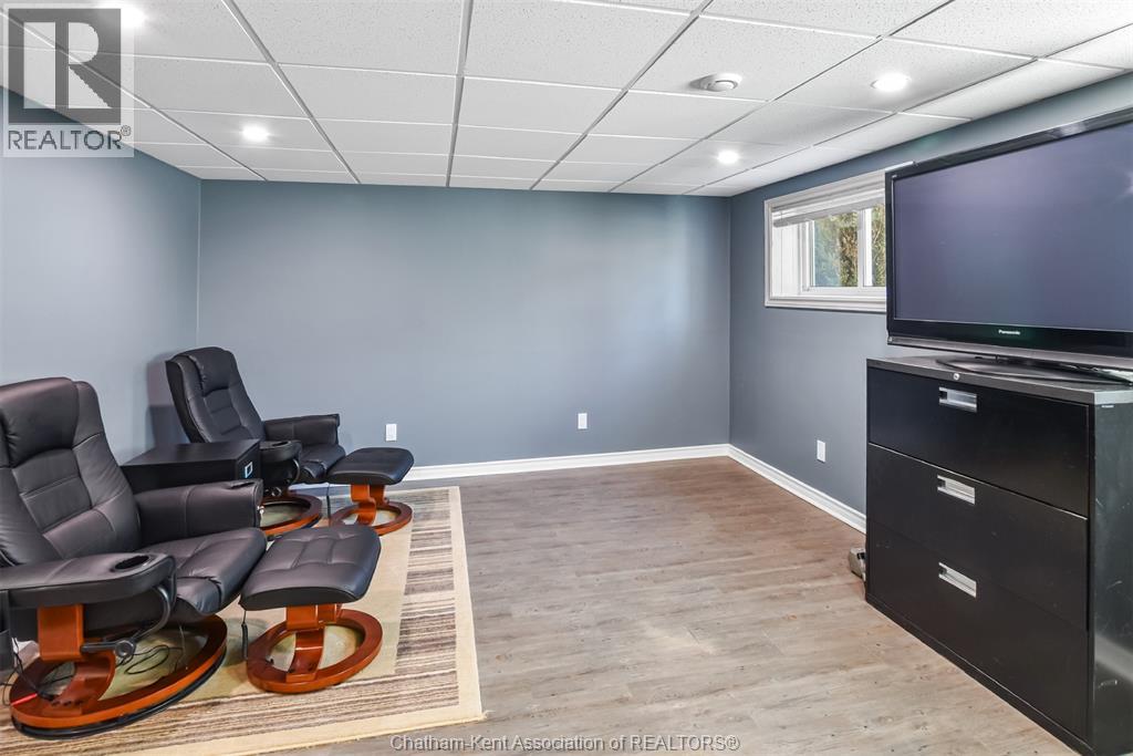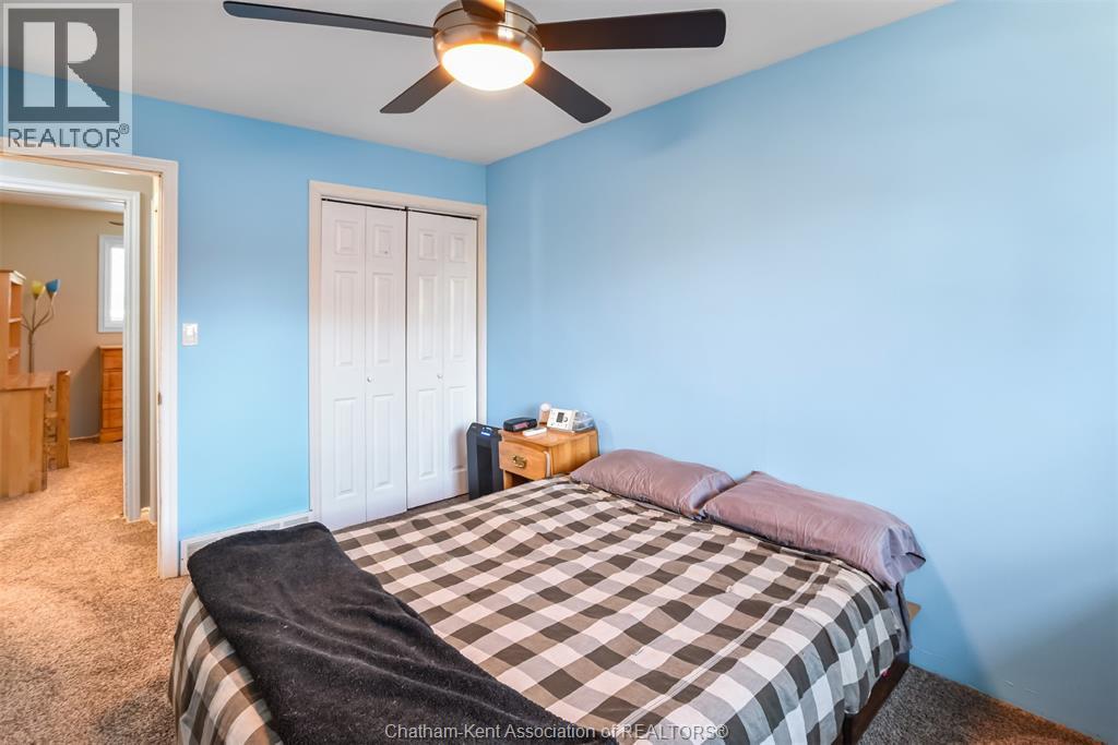 414 Catherine St in desirable Blenheim has a terrific combination of features. Starting off with a dead end street, mature trees for privacy, fenced rear yard and 14' x 25' wired, insulated and heated detached garage or workshop. Excellent road appeal with the brick exterior, metal roof on both house and garage, new siding and exterior doors in 2023. Plenty of room for parking with the long double drive. Side entry into an open concept oak kitchen with breakfast bar open to the living room creating an inviting and bright living space. This kitchen has plenty of cabinetry plus room for a kitchen table alongside the working bar area, dishwasher and built-in microwave. Upper level has 3 bedrooms and a full 4 pc bath. Finished lower level with family room and bright windows, (not being deep in the ground like a typical basement). Utility room with laundry, furnace, storage and a 2 pc bath. The furnace was new in 2021 and a new ERV in 2024. (id:4069)